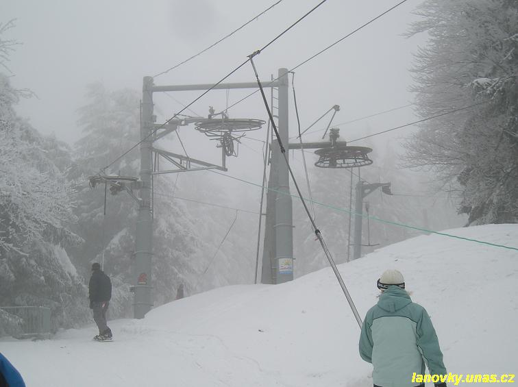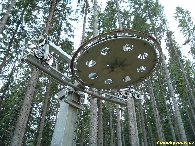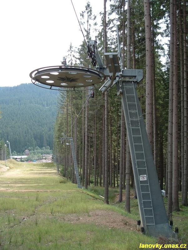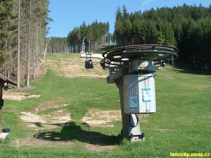 kotvový vlek Doppelmayr typu APF 555, který má rovněž trasu ve tvaru