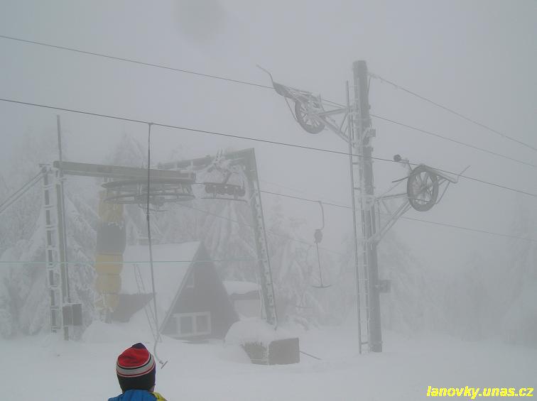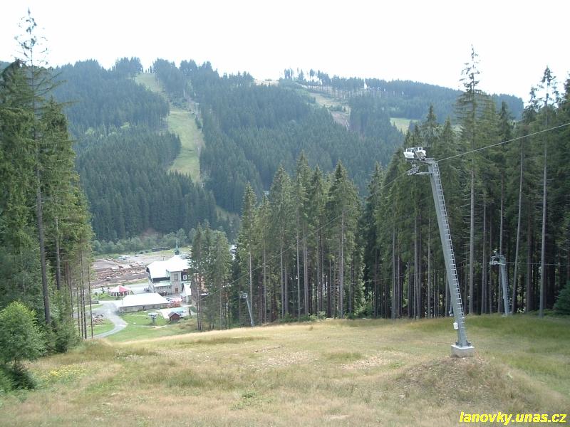 trojúhelníku - tažná větev vede po okraji sjezdovky a na podpěře č. 5 se
