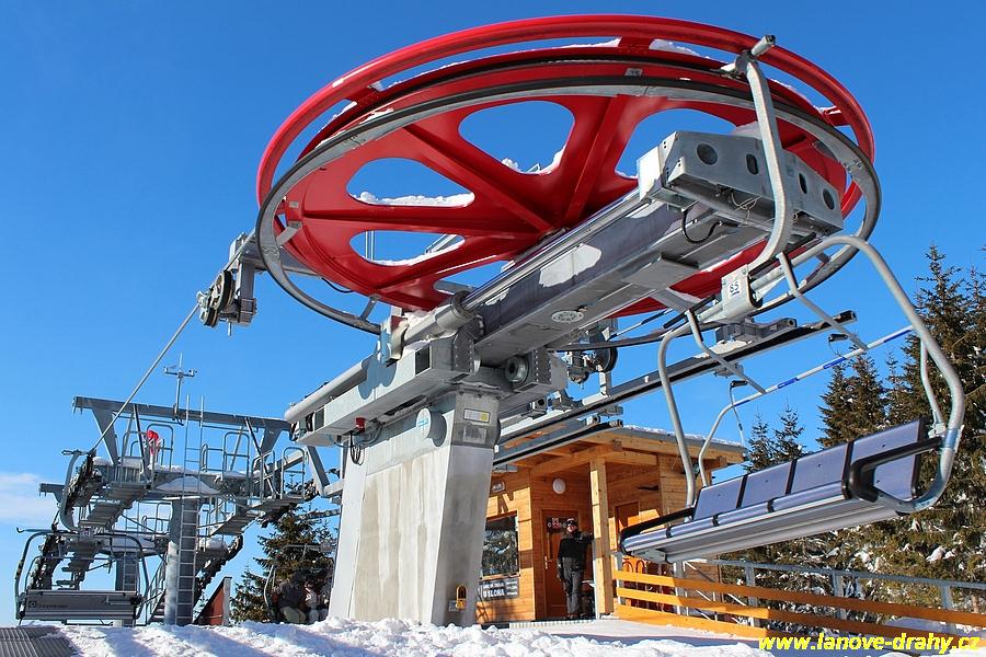 odpojitelnou lanovku v České republice. V dolní poháněcí a napínací stanici je