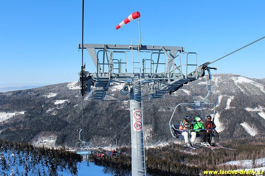 Jeho páteří je neodpojitelná čtyřsedačková lanovka s rozběhovým pásem, která