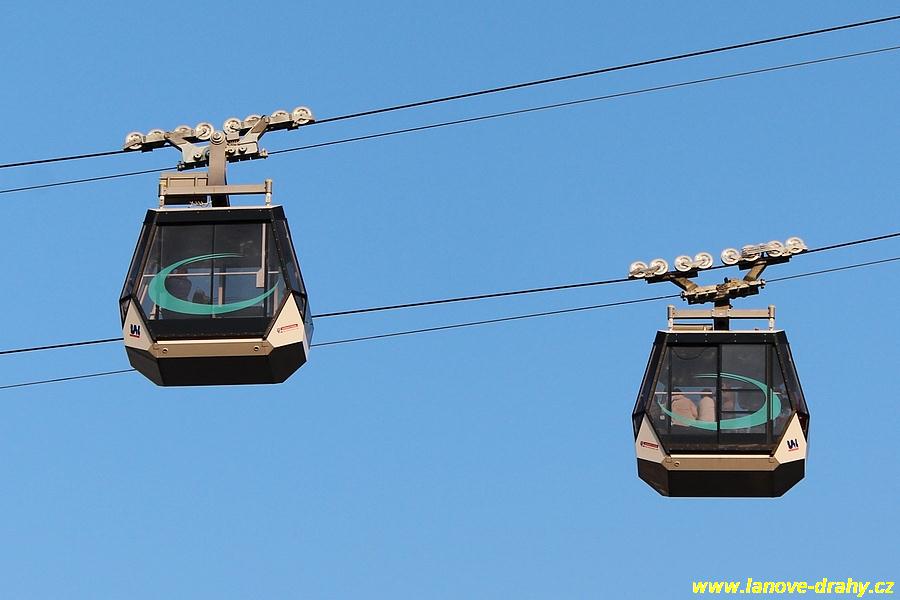 kabiny vyváží návštěvníky z obchodního centra Forum ležícího nedaleko centra