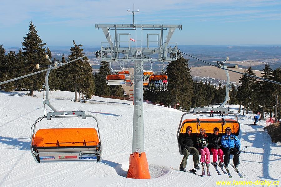 na jižním svahu Klínovce za 2300 metrů dlouhou odpojitelnou čtyřsedačku