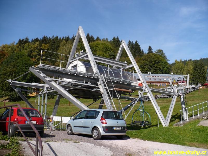 novou lanovku. Pohon i hydraulické napínání se nachází v dolní stanici typu