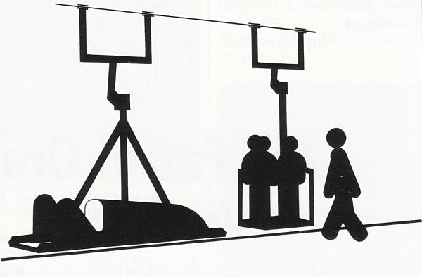 dopravnímu lanu připevněny pomocí dvou neodpojitelných závěsů s úchyty. Zařízení