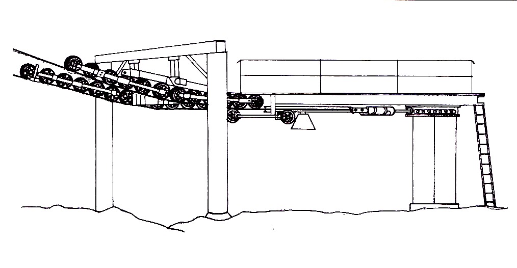 umělým ledem a pro přepravu bobů bylo nutno vybudovat vhodné přepravní zařízení
