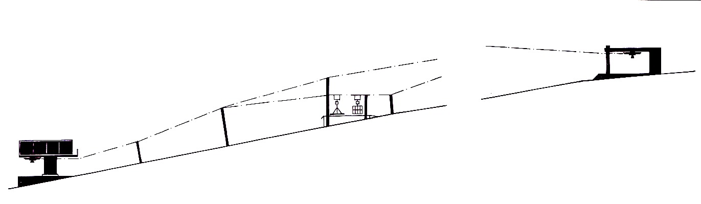 klasickým pilířem s rozpětím 9 m). Výška lanáčů nad zemí jak v poháněcí, tak