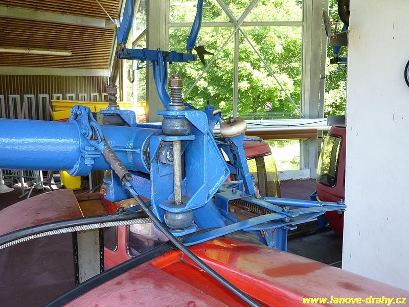 kolejnici v dolní stanici). Lanovka disponovala z výroby celkem 100 kabinkami