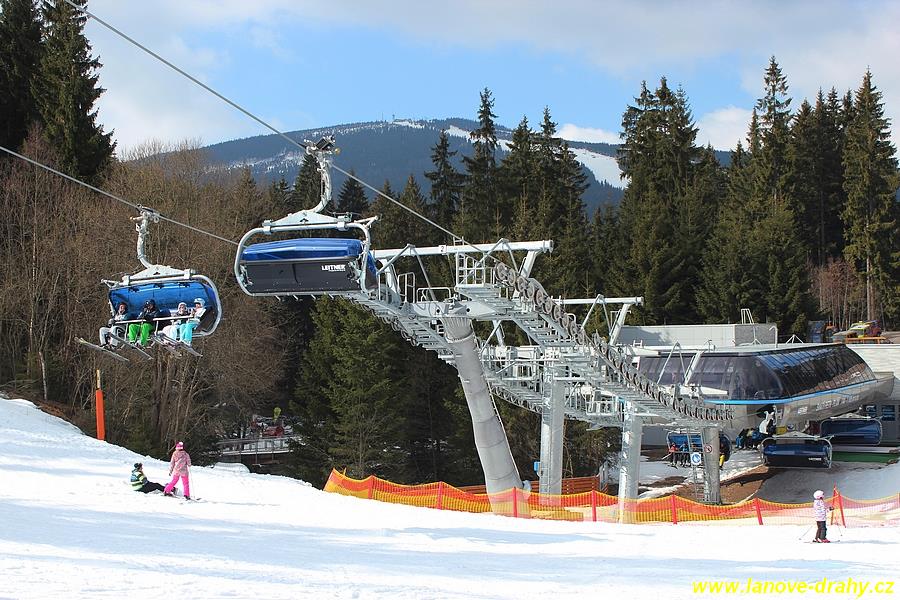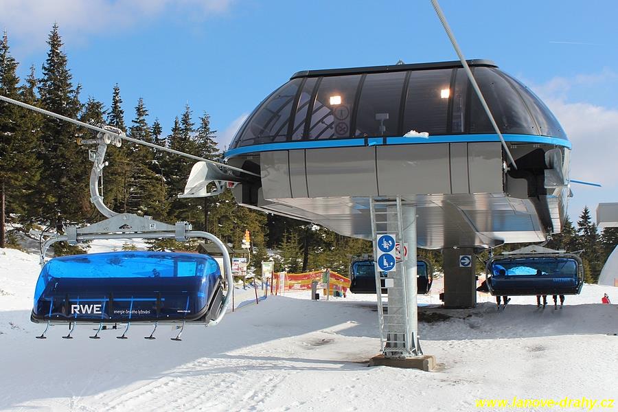 zmíněná odpojitelná čtyřsedačka Doppelmayr. Protože původní dvousedačka měla za