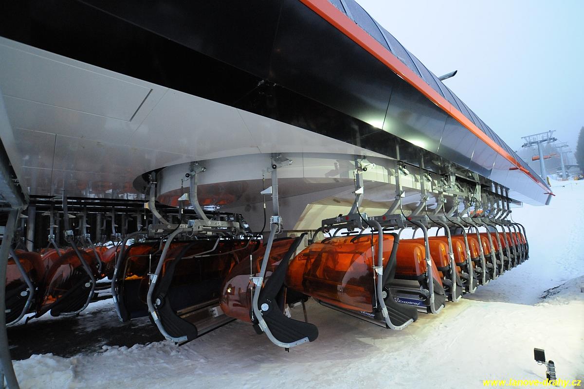 roce 2014 (odpojitelná čtyřsedačka s oranžovými bublinami nahrazující