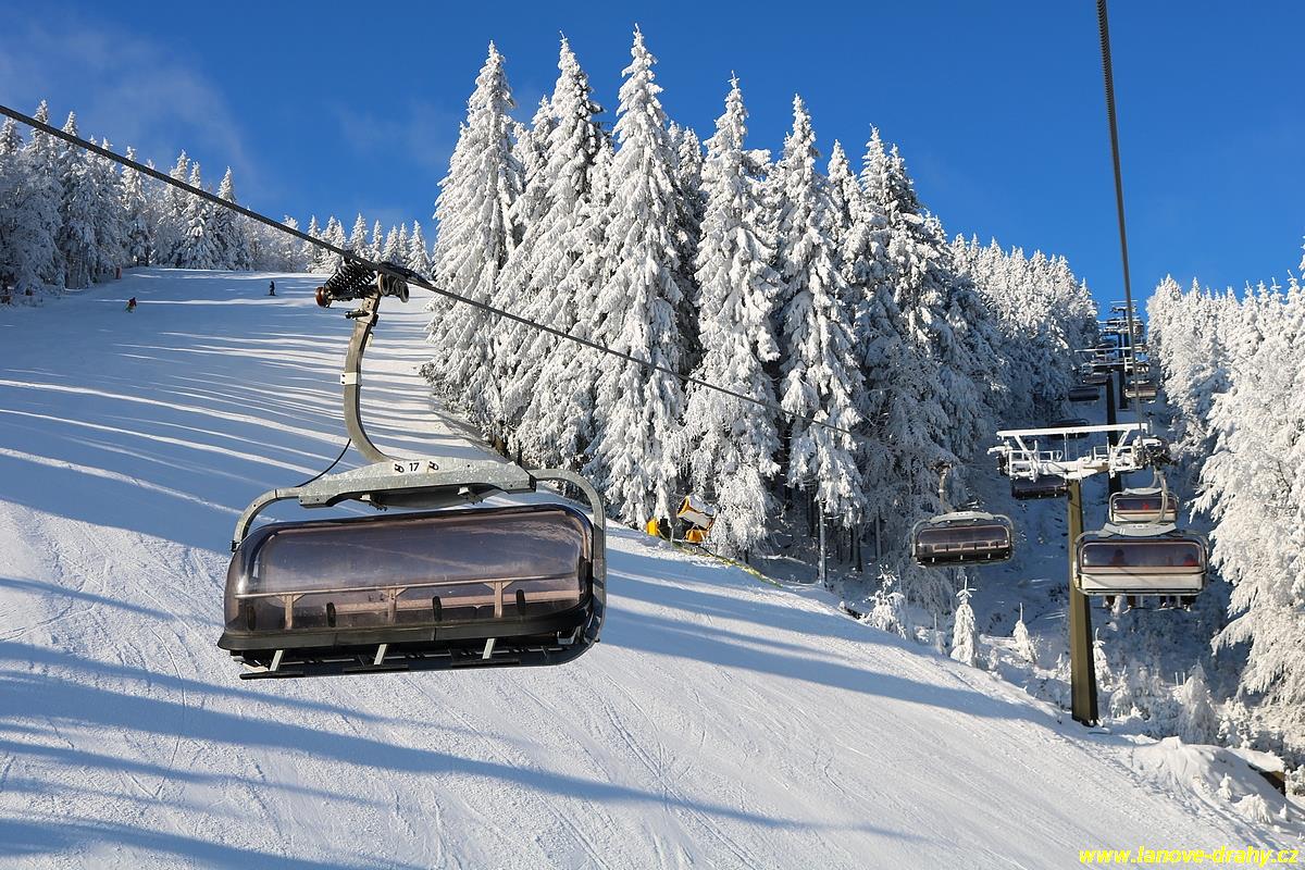 čtyřsedačku firmy Poma na Zakletý vrch, která již i přes svůj nízký věk (pouhých