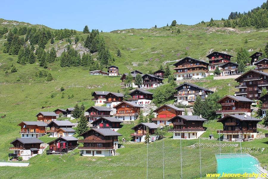 a lyžaře začátečníky. Poněkud stranou ležící Belalp s 10 lanovkami a vleky a 55
