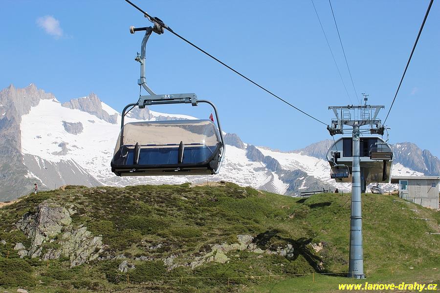 nejkrásnější výhledy na Aletschský ledovec. V letní sezóně je zpřístupněn hned