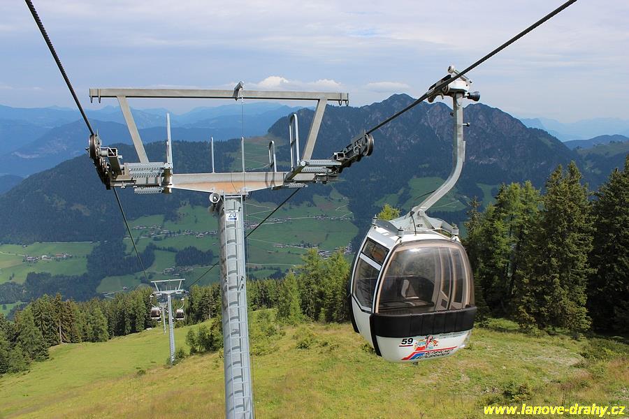 tvoří primární osu střediska šestimístná kabinková lanovka Wiedersbergerhornbahn,