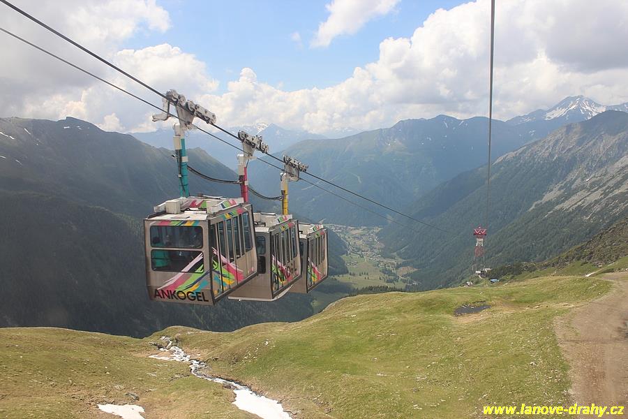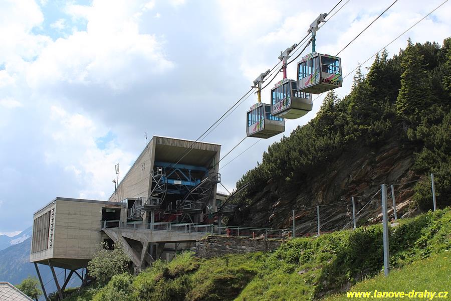 Ankogel, 8.7. Dvouúseková lanová dráha Ankogelbahn v rakouských Korutanech patří mezi málo rozšířené tandemové lanovky. Princip tohoto systému spočívá ve sdružení dvou až tří kabin do jedné skupiny na jedné větvi a většina takovýchto lanovek vznikla rekonstrukcí klasických kyvadlových lanovek pro dosažení vyšší přepravní kapacity. To byl i případ Ankogelbahn z let 1965 a 66, která prošla v roce 1994 zásadní rekonstrukcí firmou Waagner Biró, po níž jsou na prvním úseku provozovány dvojice a na druhém úseku trojice kabin. Rozdílnost spočívá také ve velikosti kabin, které jsou na prvním úseku 29-místné a na druhém 27-místné. Na prvním úseku se tak díky této rekonstrukci zvýšila přepravní kapacita z 313 na 800 osob/hod, na druhém pak z 429 na 900 osob/hod. Odlišnost obou úseků můžeme najít také v propojení jednotlivých kabin, které je u dolního úseku tvořeno tuhým nosníkem ve tvaru písmene V (obdobně jako u obdobné lanovky Gerslossteinbahn v Zillertalu, která byla vlastně prototypovou rekonstrukcí klasické kyvadlové lanovky na tandemovou) a u horního je zajištěno prostřednictvím kusu silného lana připevněného k jednotlivým závěsům kabin. Účelem tohoto propojení je tlumení výkyvů kabin a pochopitelně také zajištění vzájemné vzdálenosti jednotlivých kabin. Pohony obou úseků jsou umístěny v mezistanici Hochalmblick. Horní stanice lanovky, která leží v nadmořské výšce 2631 metrů, je dobrým východiskem vysokohorských túr. (Radim Polcer) |
