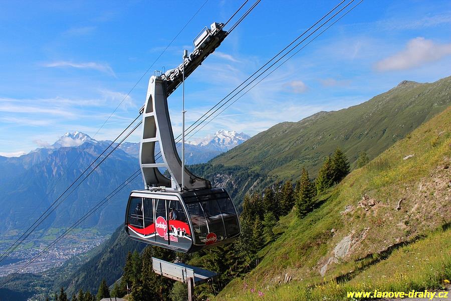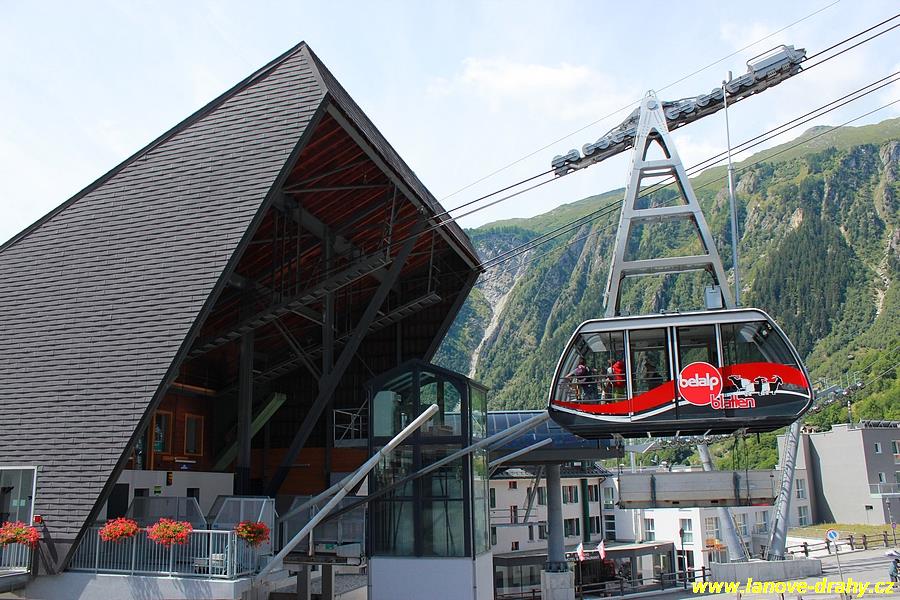 Blatten ležící nad městem Brig nad údolím Rhony. Zde startují hned 2 lanovky,