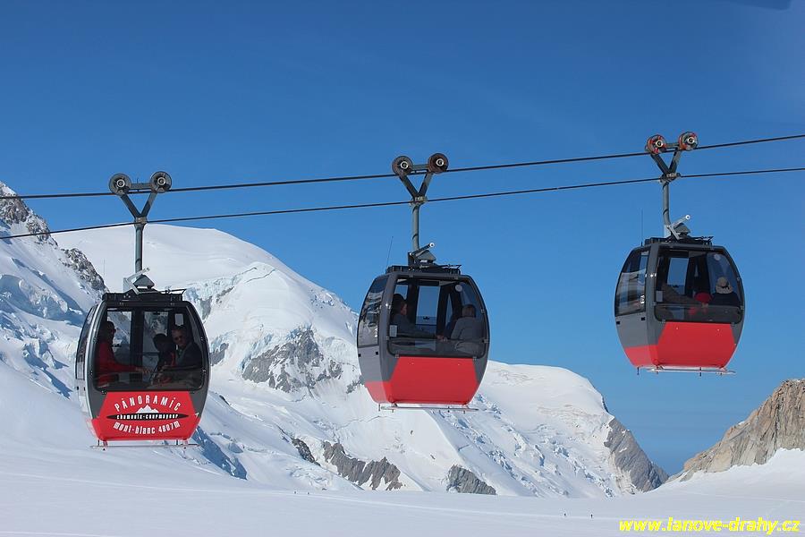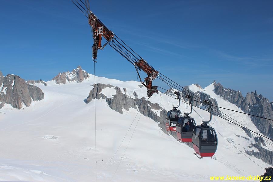 3783 metrů. Zde začíná další pozoruhodná lanová dráha Télécabine Panoramique
