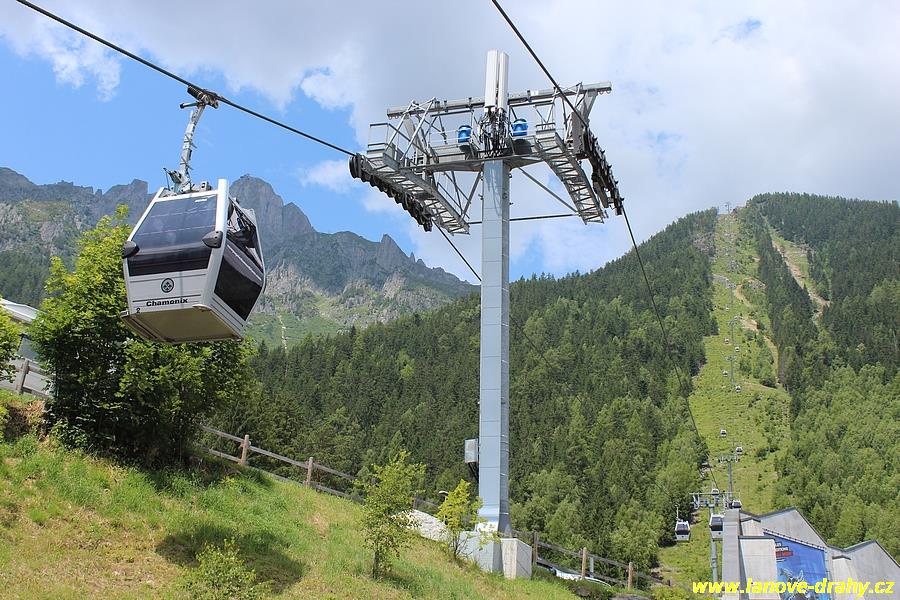 lanovka Poma na Planpraz, na níž navazuje kyvadlová lanovka na Brévent. Za
