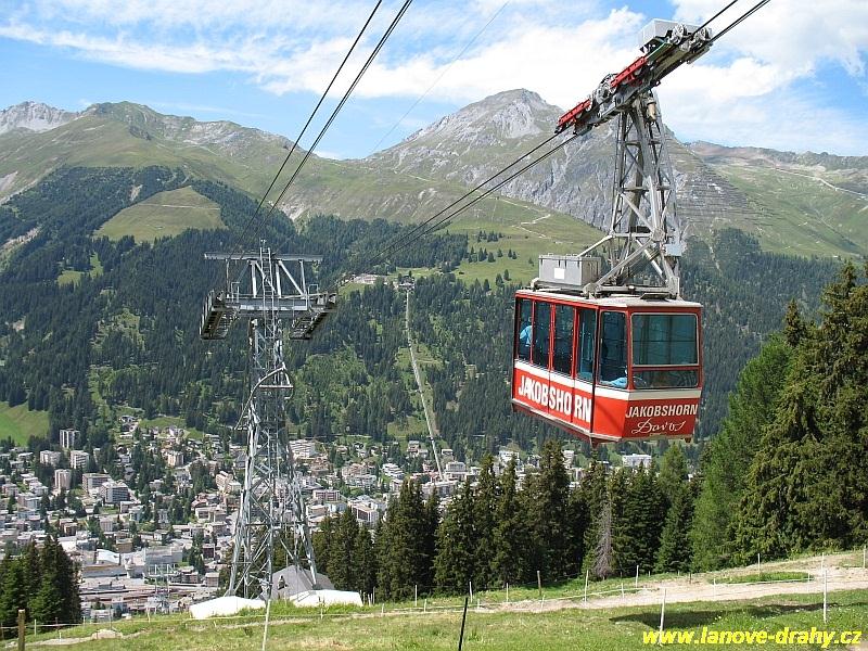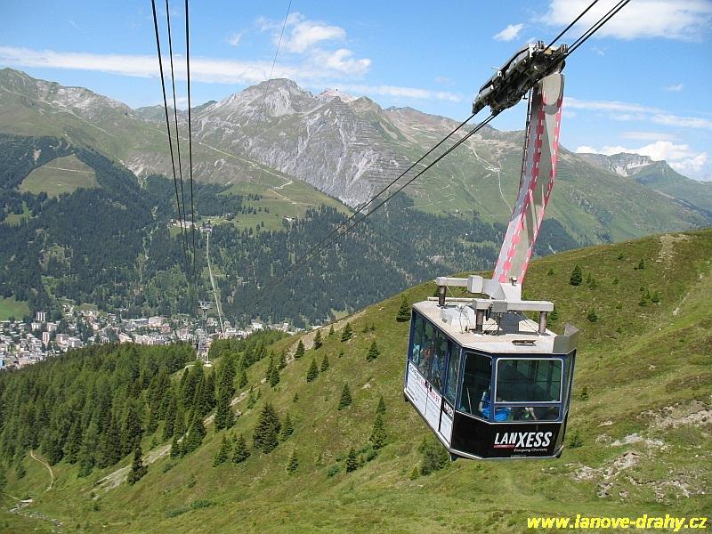 Přímo z centra Davos Platz vyjíždí dvouúseková kyvadlová lanovka s mezistanicí