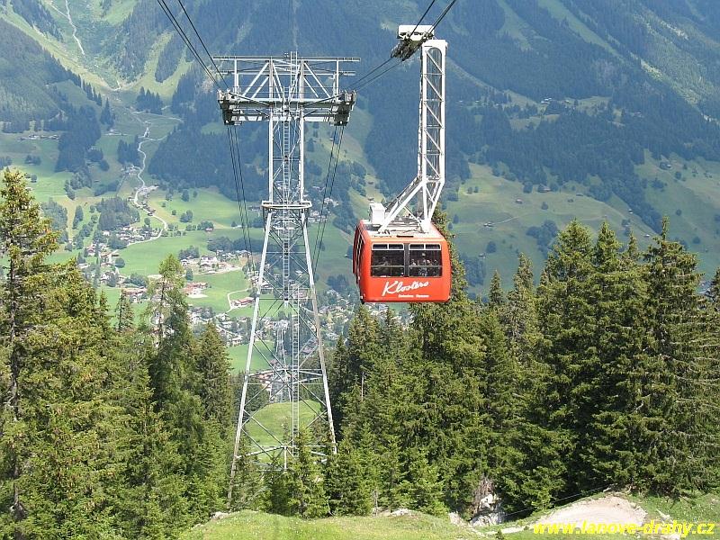 Z Klostersu vyjíždí ještě čtyřmístná kabinková lanovka Garaventa z roku