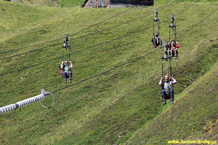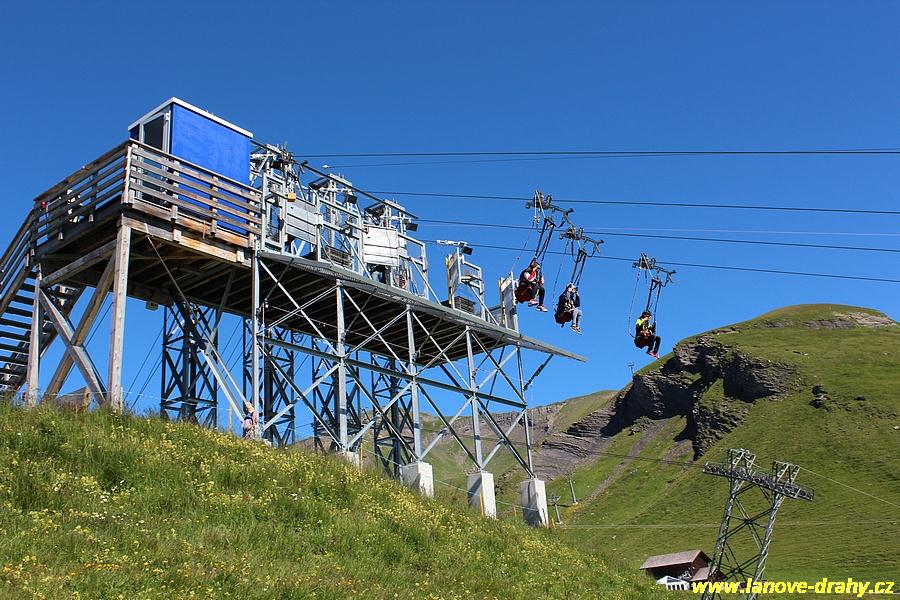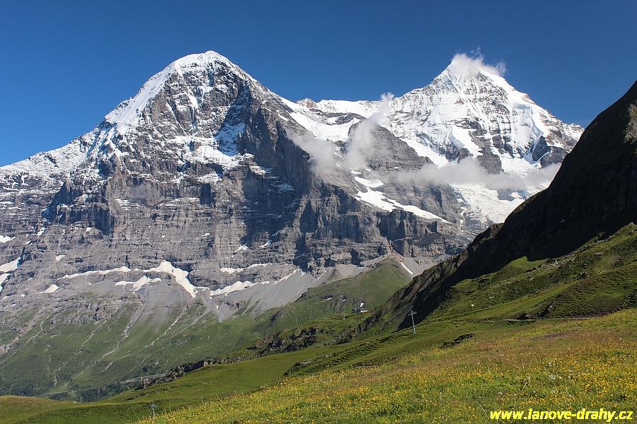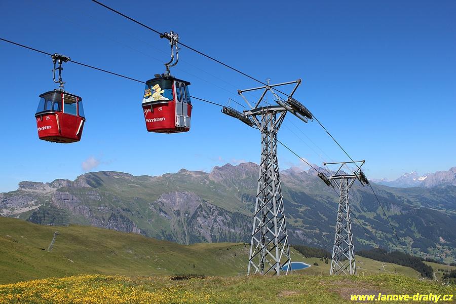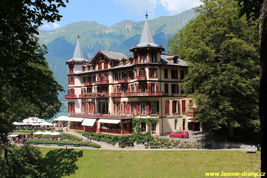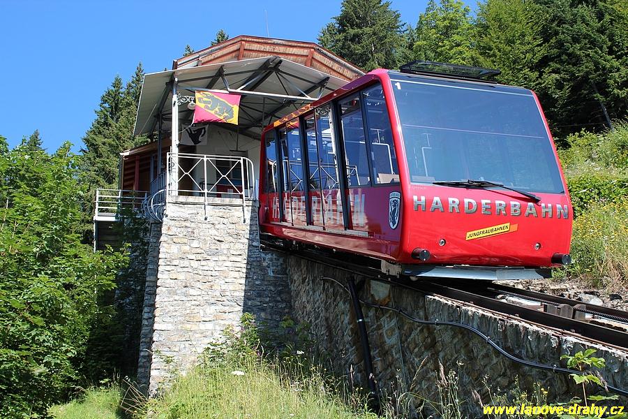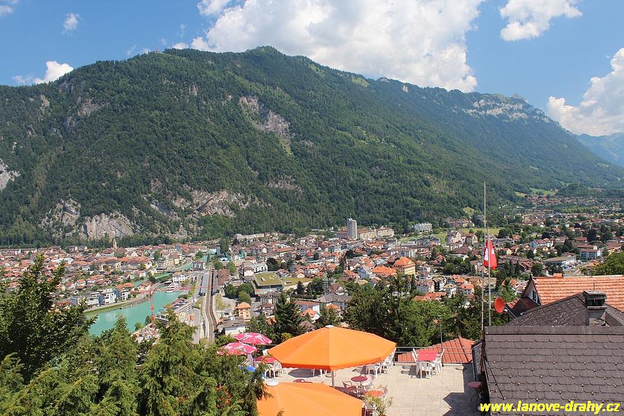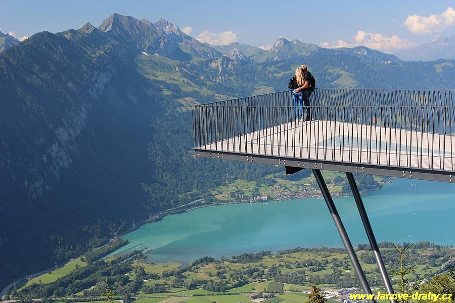 ležícím v nadmořské výšce přibližně 1000 metrů. Přím Männlichen Na opačnou stranu než je First vyjíždí z Grindelwaldu 6,2 kilometrů dlouhá čtyřmístná kabinková lanovka Habegger z roku 1978, jedna z nejdelších v Alpách. Lanovka přes mezistanici Holenstein vede na Männlichen, odkud se naskýtá nádherný výhled na světoznámé vrcholy Eiger, Mönch a Jungfrau včetně pověstné kolmé severní stěny Eigeru. Pokud máme s sebou dalekohled, můžeme se v této stěně pokusit najít okna ve skále vytesané stanice Eigerwand ozubnicové dráhy na Jungfraujoch. Z Männlichenu vychází bezpočet značených turistických cest, přičemž mezi nejznámější a nejoblíbenější patří cesty Panoramaweg, Romantikweg, Felixweg, Unesco-Weg a Gemsenweg. Na Männlichen se můžeme pohodlně dostat také z opačné strany z Wengenu, odkud nás sem dopraví kyvadlová lanovka Garaventa z roku 1992 s kabinami pro 80 osob. Schynige Platte Poblíž Interlakenu se nachází vyhlídkový vrchol Schynige Platte, který je zpřístupněn historickou ozubnicovou železnicí. Ta zde byla vybudována už v letech 1891 až 1893 a zatímco na počátku zde byly provozovány ještě parní lokomotivy, v roce 1914 byla dráha elektrifikována. Výchozím bodem je nádraží Wilderswill v nadmořské výšce 584 m n. m., kam se můžeme z Interlakenu dopravit úzkorozchodnou železnicí Berner Oberlandbahn. Odtud ozubnicová dráha o rozchodu pouhých 80 cm stoupá mj. prostřednictvím čtyř kratších tunelů a osmi mostů až do stanice Schynige Platte do nadmořské výšky 1967 metrů. Celá dráha je dlouhá 7,25 km a jízda směrem nahoru zabere 52 minut. Největší zajímavostí této dráhy je provozování historických elektrických lokomotiv a osobních vozů, z nichž většina pochází právě z roku 1914. Více zajímavostí z historie této dráhy nám přiblíží výstava, umístěná v čekárně stanice na Schynige Platte. Kromě výhledu na Interlaken na jedné straně a na masív Jungfrau na straně druhé je Schynige Platte známý díky své alpské botanické zahradě s více než 600 druhy rostlin. Tato zahrada byla založena již v roce 1927 a celou ji můžeme projít po okružní cestě dlouhé půl kilometru. Vstup do botanické zahrady je volný. Na Schynige Platte najdeme také stejnojmenný horský hotel s restaurací. Harder Vrchol Harder vysoký 1322 metrů leží přímo nad jezery Brienzersee a Thunersee a díky svému parádnímu výhledu na město bývá právem označován jako domácí hora Interlakenu (Interlaken vděčí za své jméno právě poloze mezi oběma jezery). Jízda na Harder Kulm pozemní lanovkou s nástupní stanicí u interlakenského východního nádraží trvá pouhých 8 minut. Lanovka původního výrobce Von Roll prošla před čtyřmi lety při příležitosti uplynutí 100 let od zahájení provozu rekonstrukcí, při níž obdržela mj. moderní 65-místné panoramatické vozy s prosklenou střechou, takže již samotná jízda lanovkou se tak stává zážitkem. Na vrcholu Harder Kulm najdeme kromě restaurace také nově otevřenou visutou vyhlídkovou plošinu s názvem Zwei-Seen-Steg, která nám poskytne skvělý pohled z ptačí perspektivy nejen na město Interlaken, ale také na jezera Brienzersee a Thunersee. Stejně tak je odtud dobrý výhled na trvale zasněžený masív Jungfrau. Plošina, jejíž předlohou byla obdobná (avšak podstatně větší) plošina s názvem Skywalk v Grand Canyonu v Arizoně, byla otevřena na podzim 2011 a je umístěna poblíž již zmíněné restaurace. Pobyt na Harderu můžeme završit procházkou po okružní cestě kolem celého vrcholu s 12 naučnými tabulemi. Heimwehfluh Druhým vyhlídkovým místem města Interlaken, byť již ne tak vysokým jako Harder, je Heimwehfluh. Ten je známý především díky své historické pozemní lanovce, která je až dodnes provozována prakticky v původním stavu. Postavena byla švýcarskou strojírnou Von Roll v roce 1906 a cestující jsou zde přepravováni originálními 32-místnými vozy s dřevěnou karoserií a s charakteristickými záclonkami. Přímo u horní stanice pozemní lanovky najdeme kromě restaurace s 200 místy a menší kamenné rozhledny také rozsáhlé modelové železniční kolejiště, které zde bylo budováno postupně již od roku 1948. Cestu z Heimwehfluh zpět do Interlakenu můžeme absolvovat na krátké, zato však pořádně strmé a tedy i rychlé bobové dráze. Giessbach Giessbach se sice nachází již poněkud dále od Interlakenu, milovníci historie by však návštěvu tohoto místa rozhodně neměli vynechat. Nachází se zde totiž historická pozemní lanovka Von Roll, která je se svým rokem výroby 1879 nejstarší dosud provozovanou pozemní lanovkou Evropy. Je to zároveň první lanovka, na níž byla použita k vyhýbání 40-místných vozů uprostřed trati geniálně jednoduchá a dodnes používaná tzv. Abtova výhybna, která na rozdíl od klasických železničních výhybek funguje bez jediné pohyblivé součásti. Tato necelých 350 metrů dlouhá dráha zde spojuje přístaviště lodí na jezeře Brienzersee s luxusním historickým Grandhotelem Giessbach, který je ještě o 7 let starší, než samotná pozemní lanovka. Vyhledávanou turistickou atrakcí jsou také zdejší vodopády Giessbachfälle, zpřístupněné značenou turistickou tratí. Z Interlakenu se dá do Giessbachu za 20 až 30 minut dojet autem, mnohem romantičtěšjší je ale jízda lodí po jezeře Brienzersee. Velmi oblíbená je oblast Jungfrau také v zimní sezóně, kdy návštěvníkům nabízí celkem 45 lanovek a vleků, obsluhujích více než 200 km sjezdových tratí všech obtížností. V nadcházející zimní sezóně se lyžaři mohou těšit na novinku v podobě rychlé šestisedačkové lanovky s názvem Wixi, která nahradí již nevyhovující dvousedačk