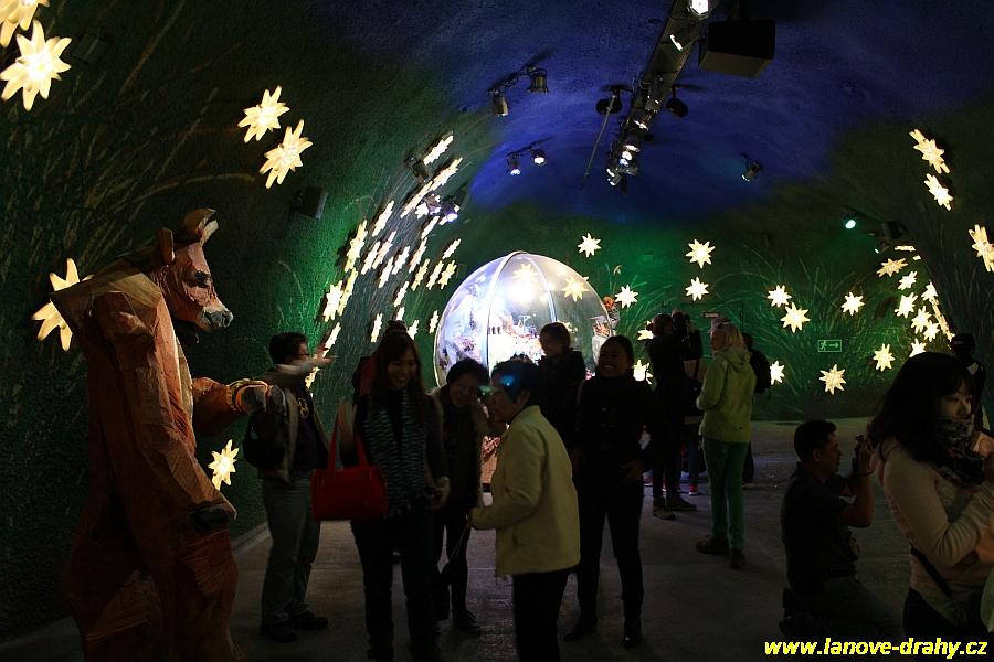 Sphinx přímo s ledovým palácem a stanicí zubačky. V jedné kaverně probíhá