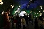 Propojovací štolou nás pak pohyblivý chodník proveze jako galerií, na jejichž
