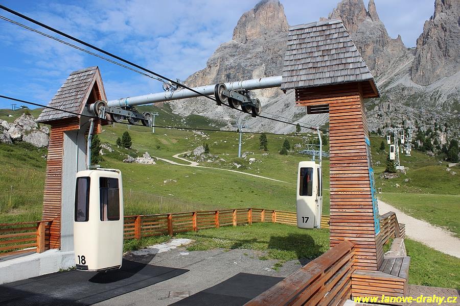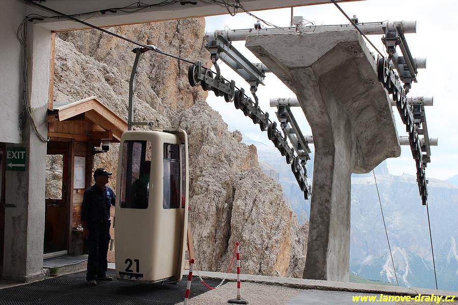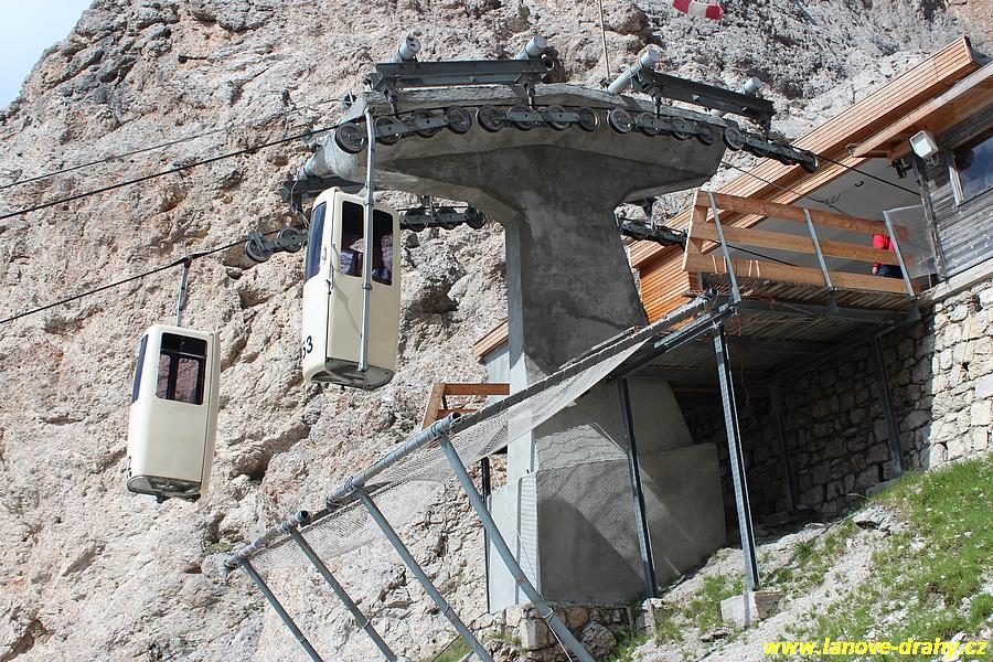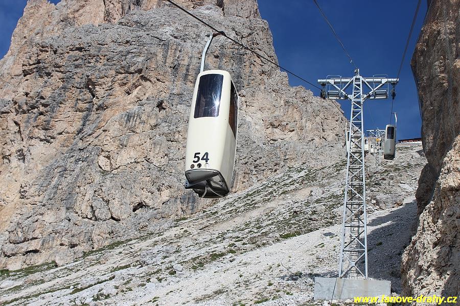 košová lanovka vedoucí do sedla mezi vrcholy Langkofel a Plattkofel v nadmořské