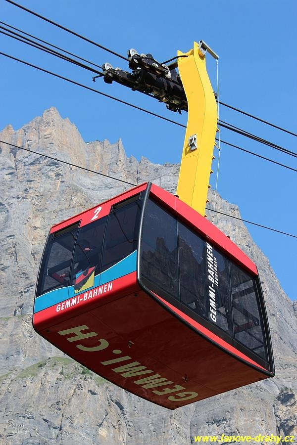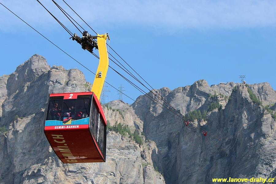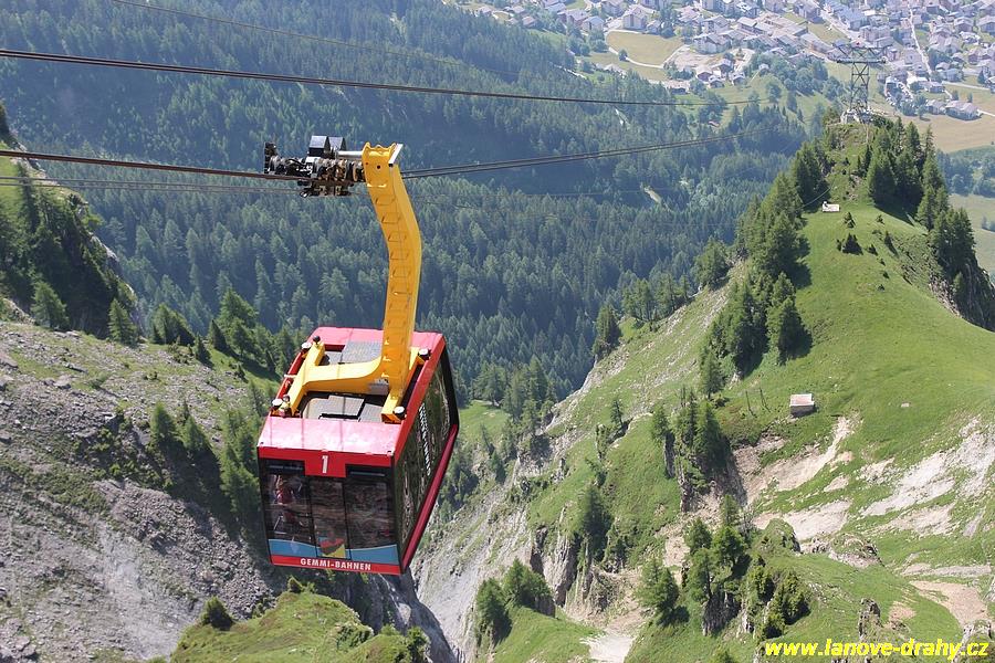 kyvadlová lanovka do průsmyku Gemmi. Pro návštěvníky nejviditelnější změnou po