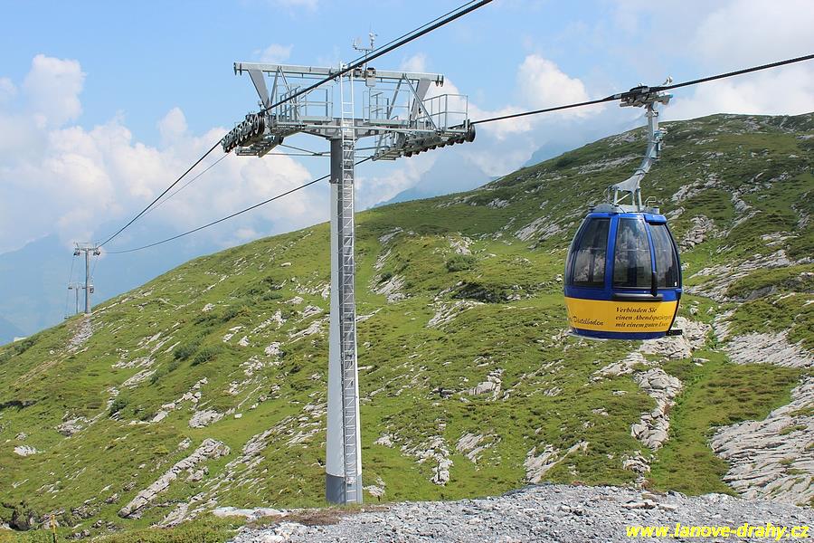 kabinková lanová dráha vedoucí z obce Stöckalp v údolí. Ta navíc v loňském roce