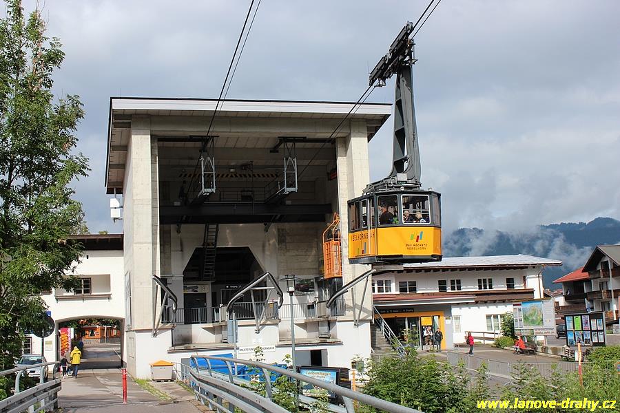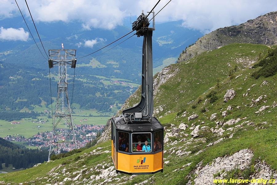 Oberstdorfu vyjíždí trojúseková kyvadlová lanovka na známý a turisty velmi