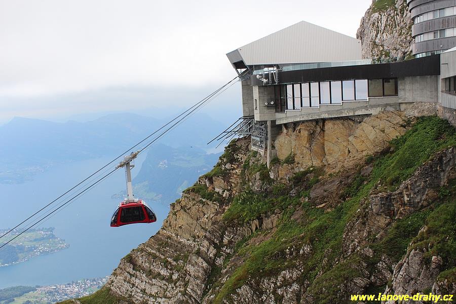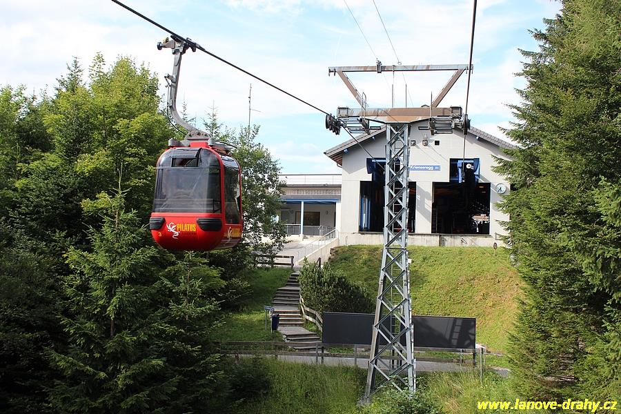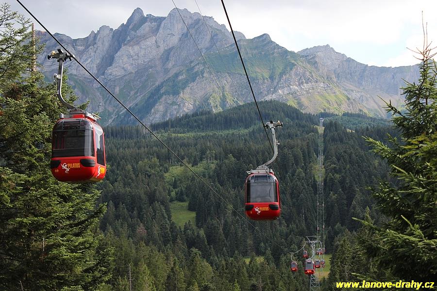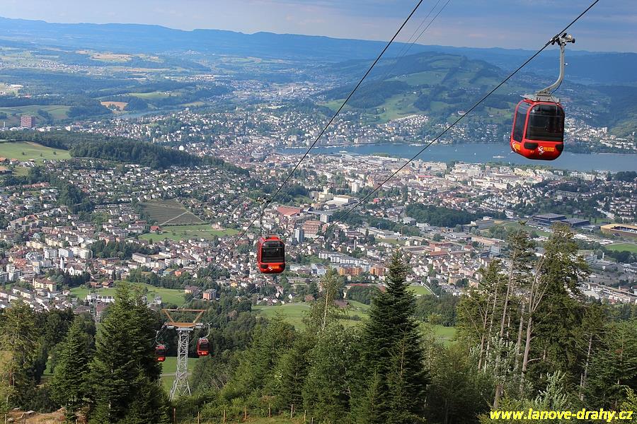 přes mezistanici Krienseregg až na Fräkmüntegg. Mezistanicí Krienseregg kabiny