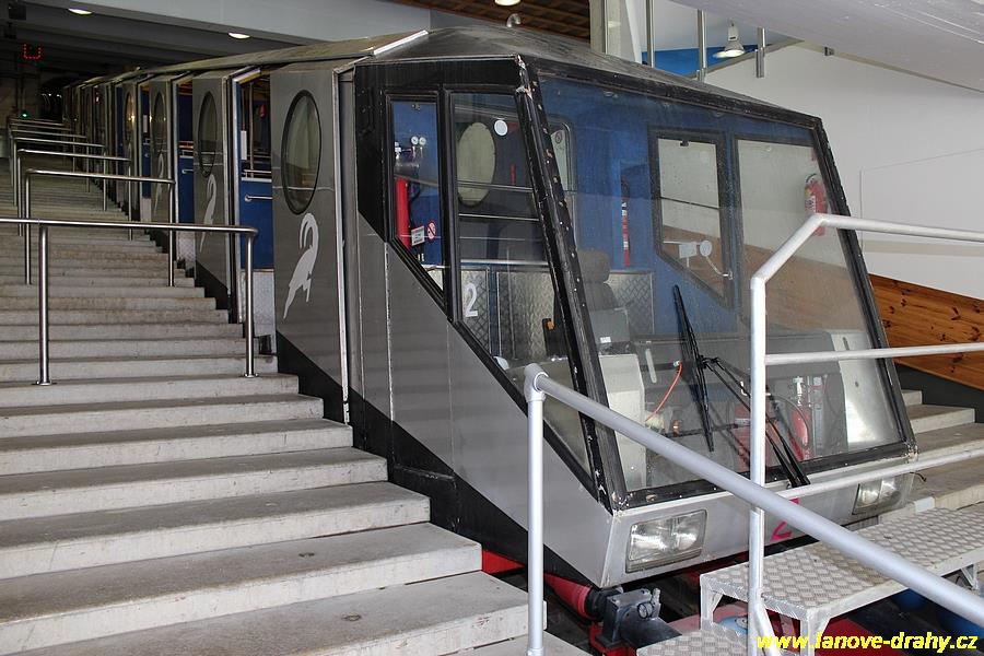 Spojení střediska se světem zajišťuje tunelová pozemní lanová dráha s vozy pro