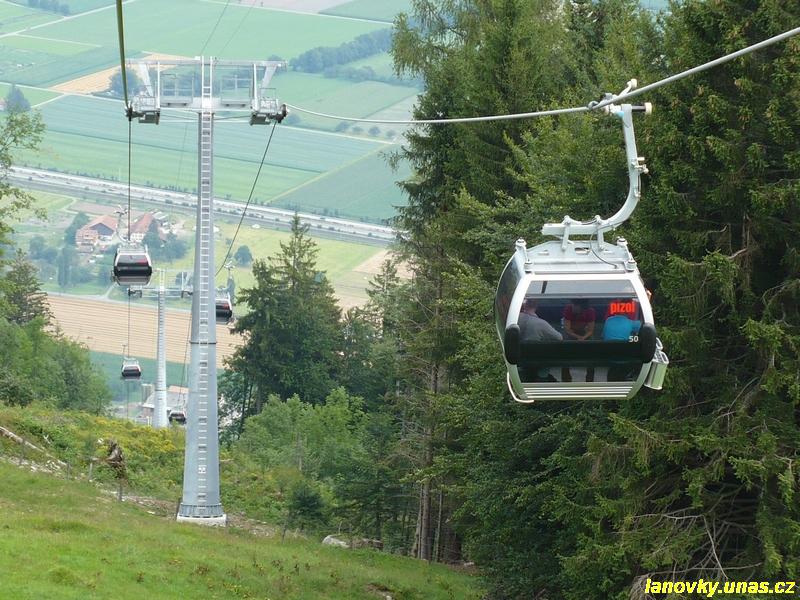stoupá 4-kabinková lanovka Von Roll, rovněž ve dvou úsecích. Ta nahradila v roce