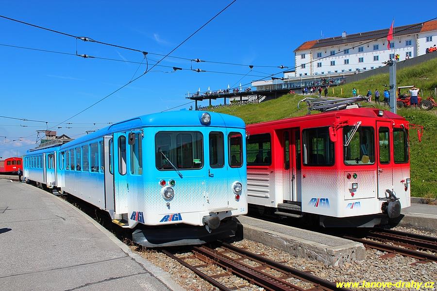 provedení a dráha Arth-Rigi-Bahn zase v modrobílém. Po sloučení obou zubaček lze