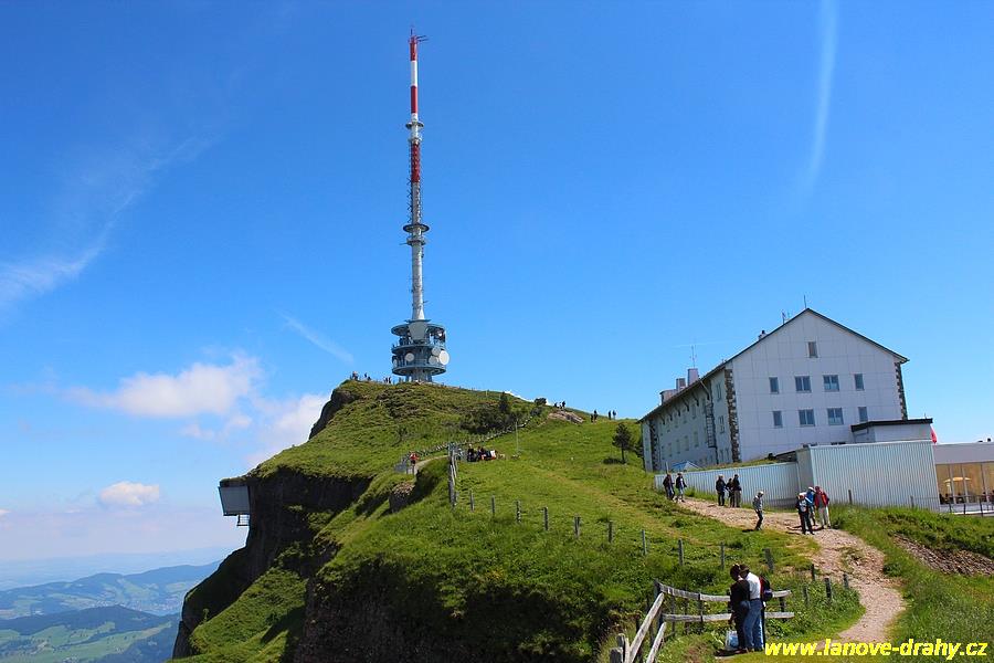 vrchol Rigi s televizním vysílačem a hotelem Rigi Kulm. Kromě překrásného
