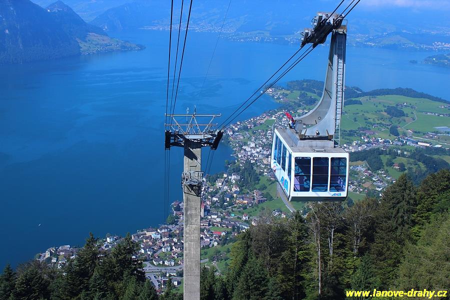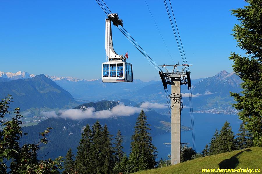 a to visutou kyvadlovou lanovkou z obce Weggis s následným přestupem na zubačku