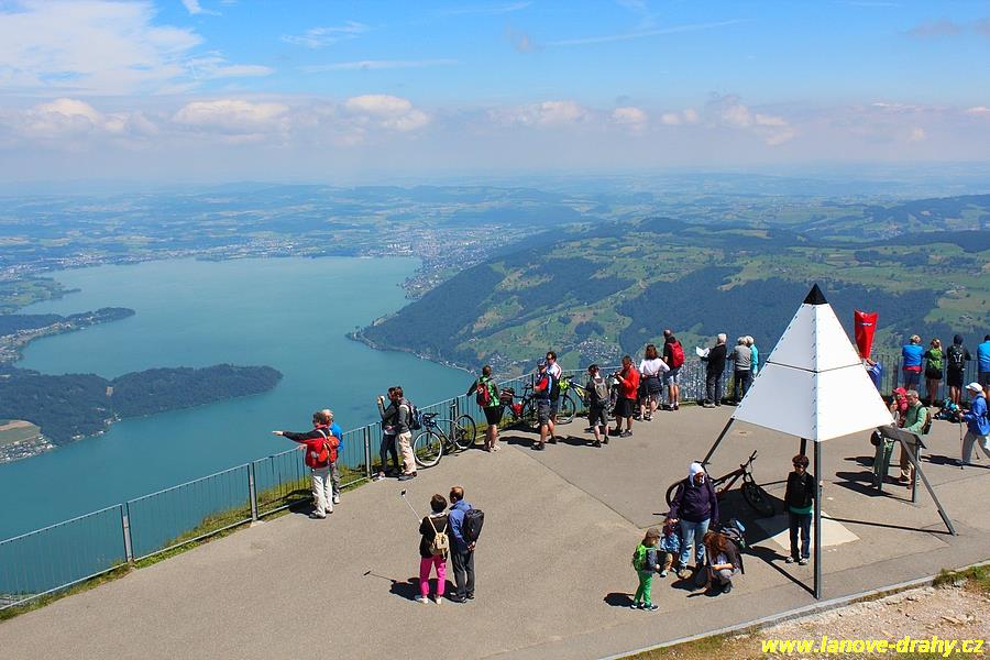výhledu na jezera Zugersee a Vierwaldstättersee, které leží na rozhraní čtyř
