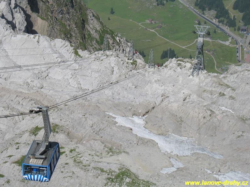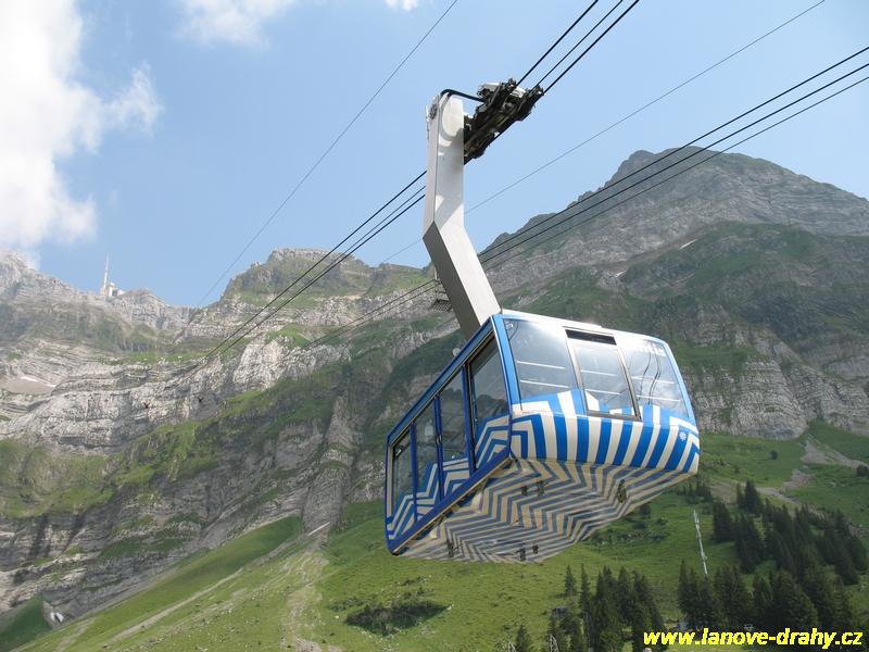 stejné ploše kabin snížena na 85 osob. Jak Säntis, tak Schwägalp leží doslova