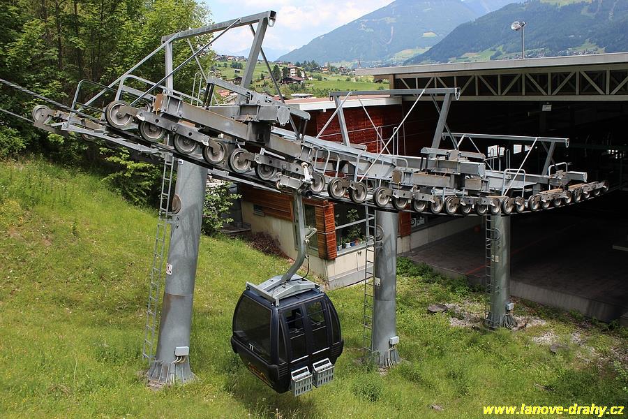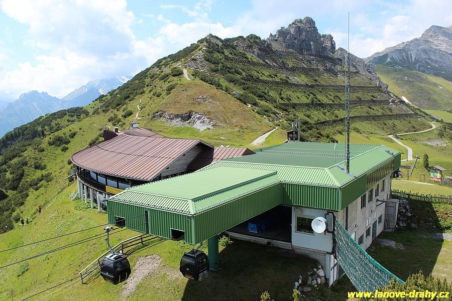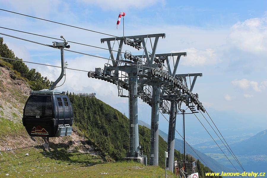 Innsbrucku) zajišťuje dvouúseková šestikabinková lanovka značky Doppelmayr. Ta