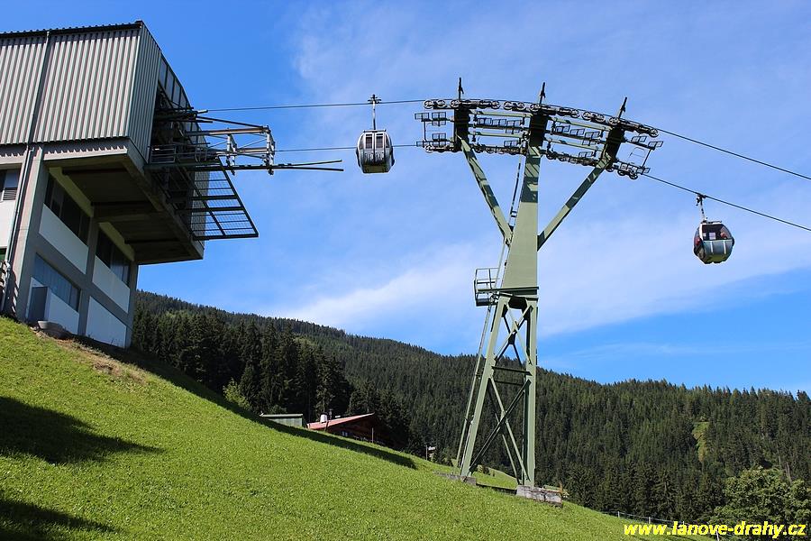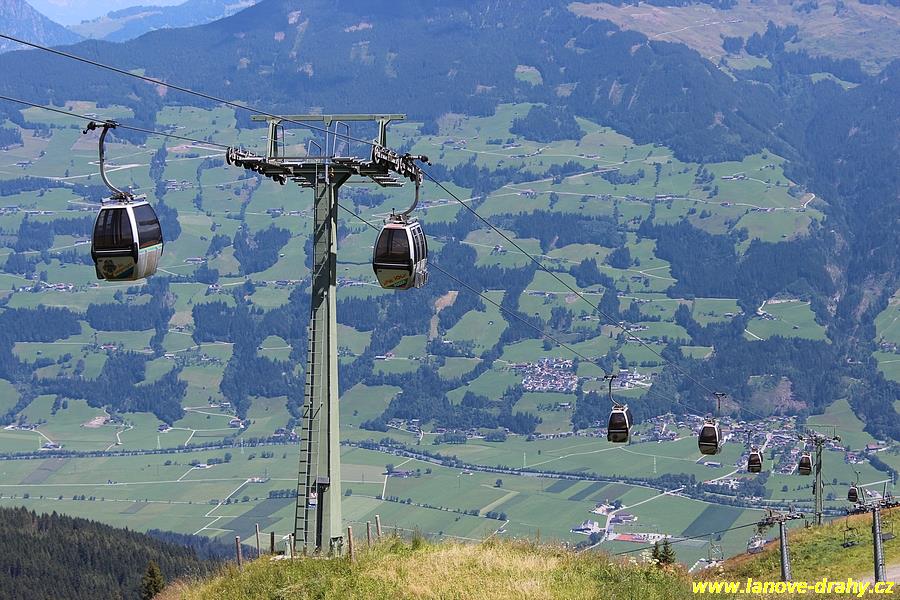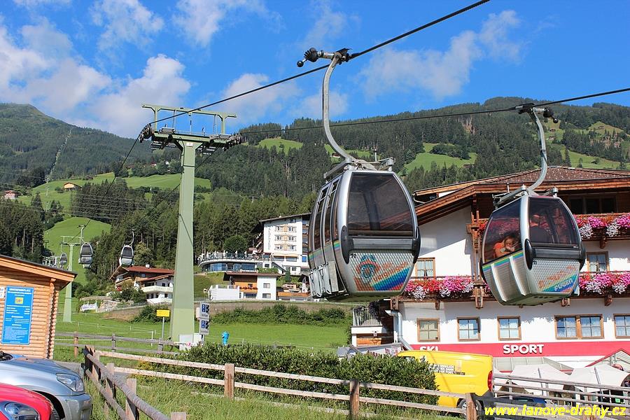 lanovkou, jejíž trasa bude prodloužena podstatně níže až k silnici do Hochfügenu