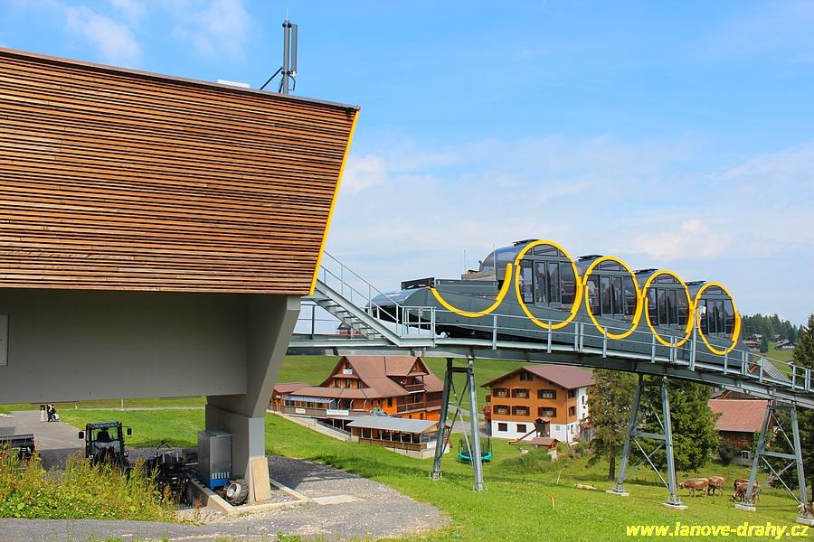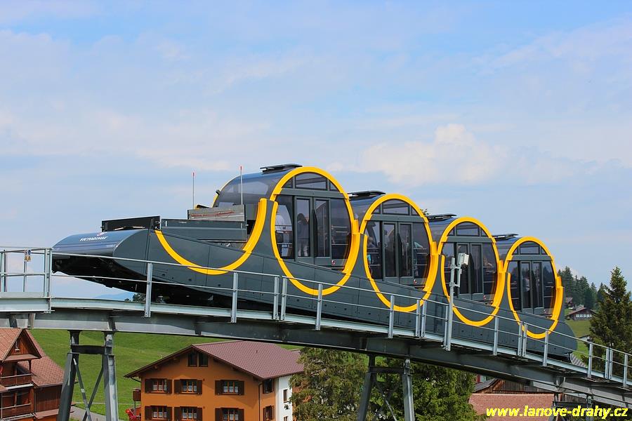 lanovky s kabinami pro 15 osob z obce Morschach, její přepra vní kapacita ovšem