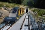 pozemní lanové dráhy se dvěma 50-místnými vozy a Abtovou výhybnou uprostřed