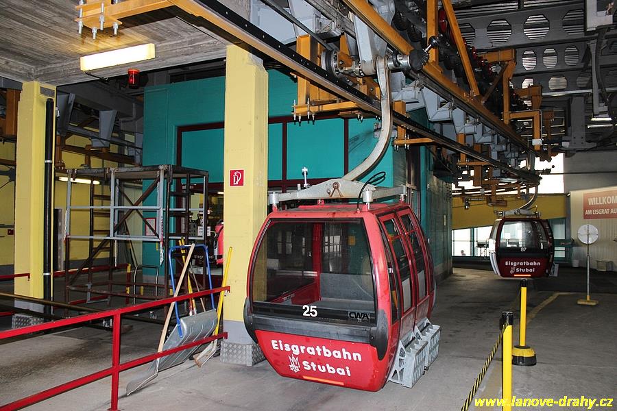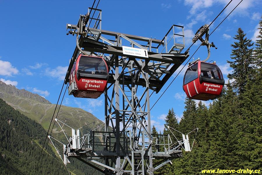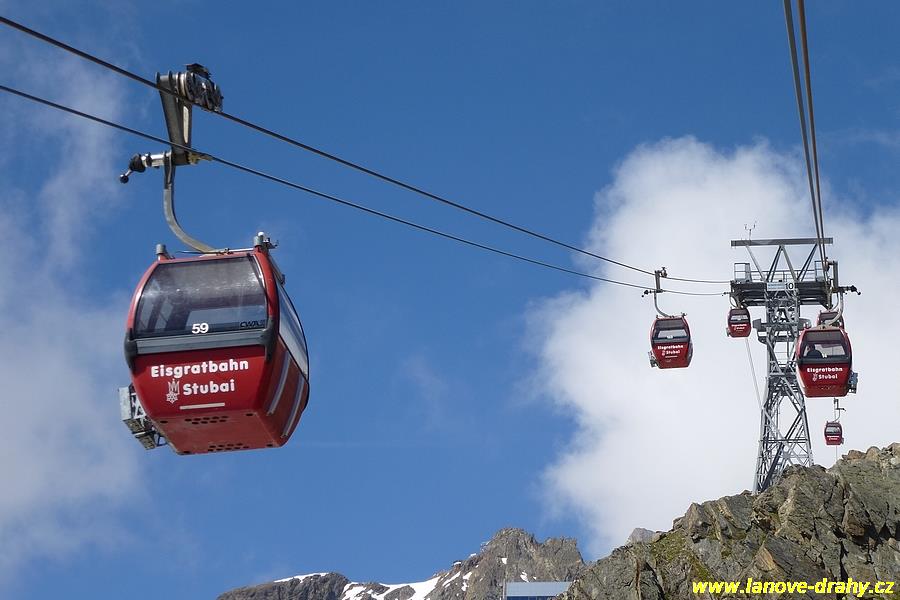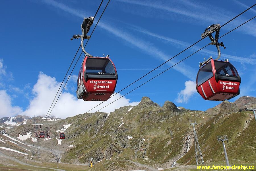 dvoulanovou šestimístnou kabinkovou lanovkou Eisgratbahn 1 a 2, která byla v