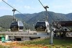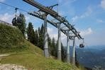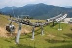 horizontálně mírně lomí. Původní šestimístná kabinková lanovka Agudio z roku