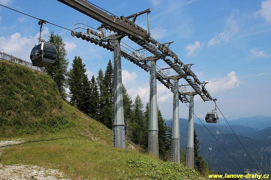Lussari, což je vyhledávané poutní místo. Lanová dráha byla vybudována v roce
