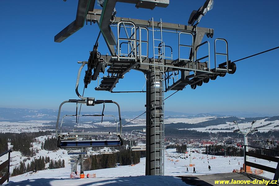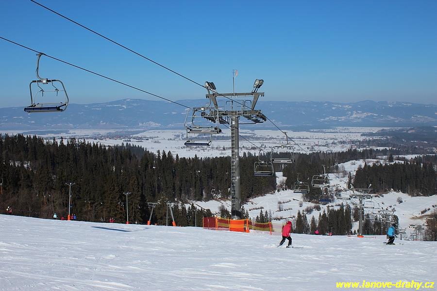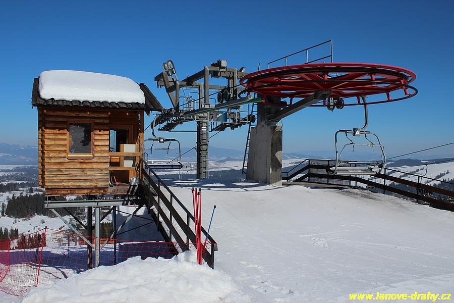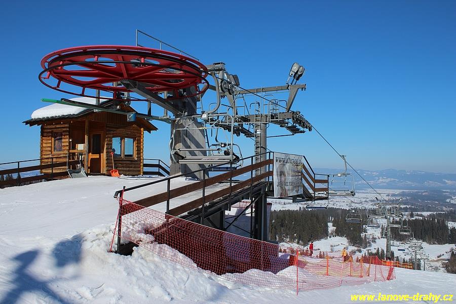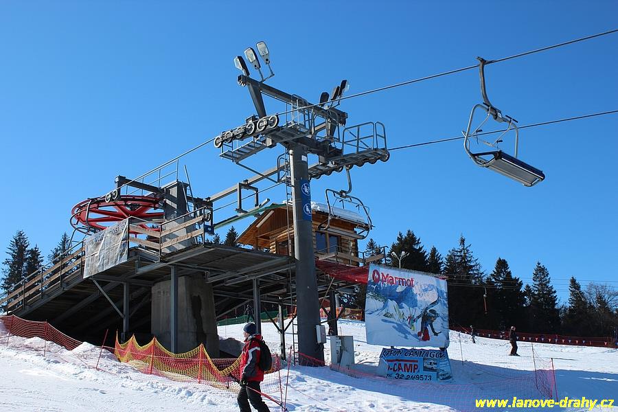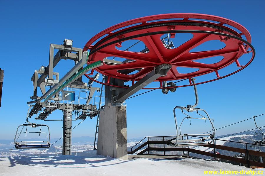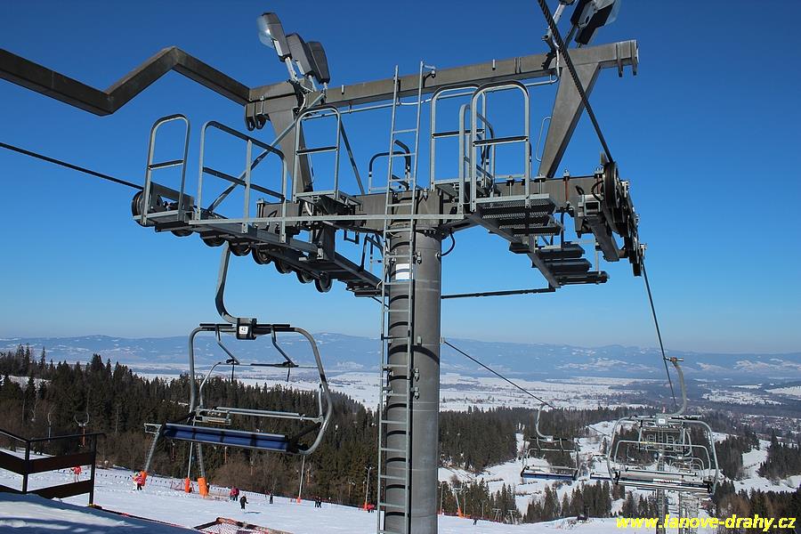 uchycením čtyřmístných sedaček a rozběhovým pásem |
