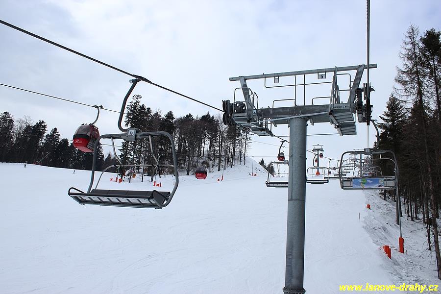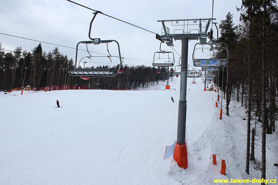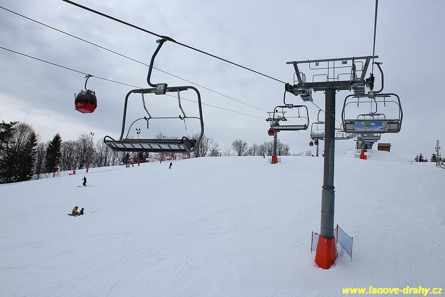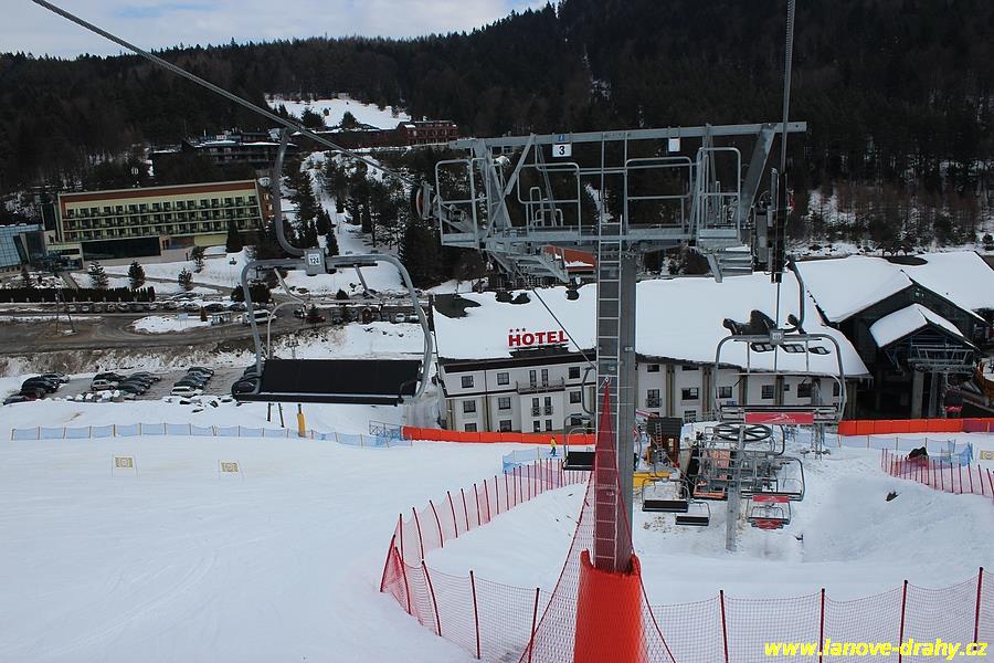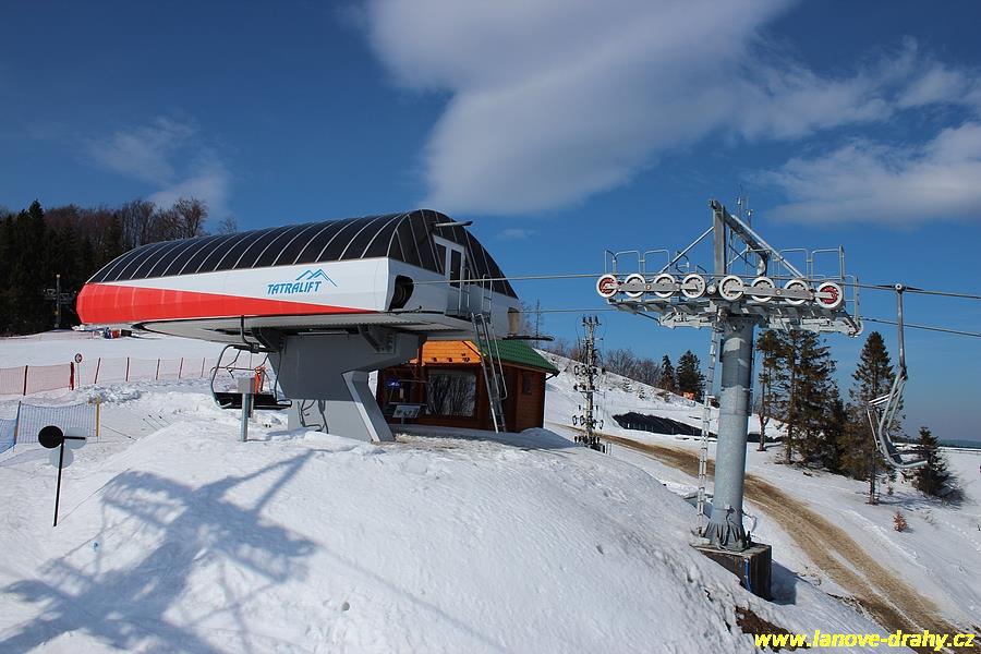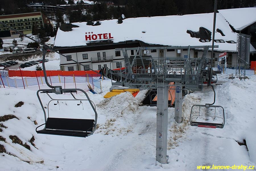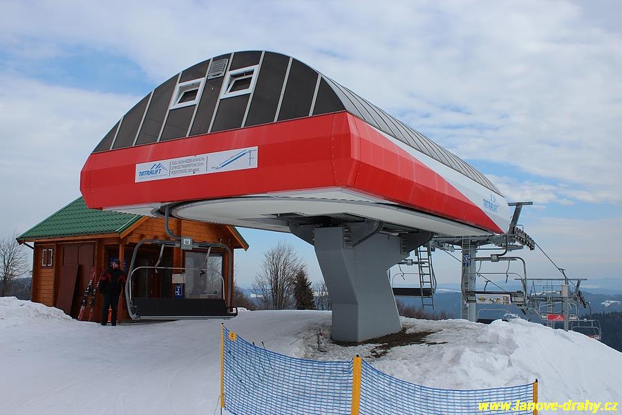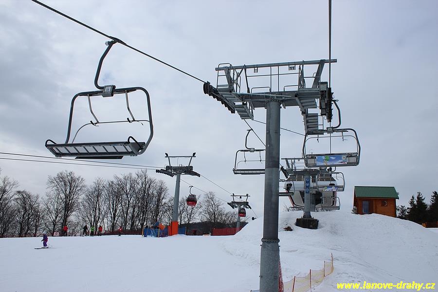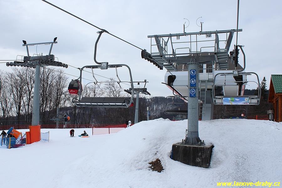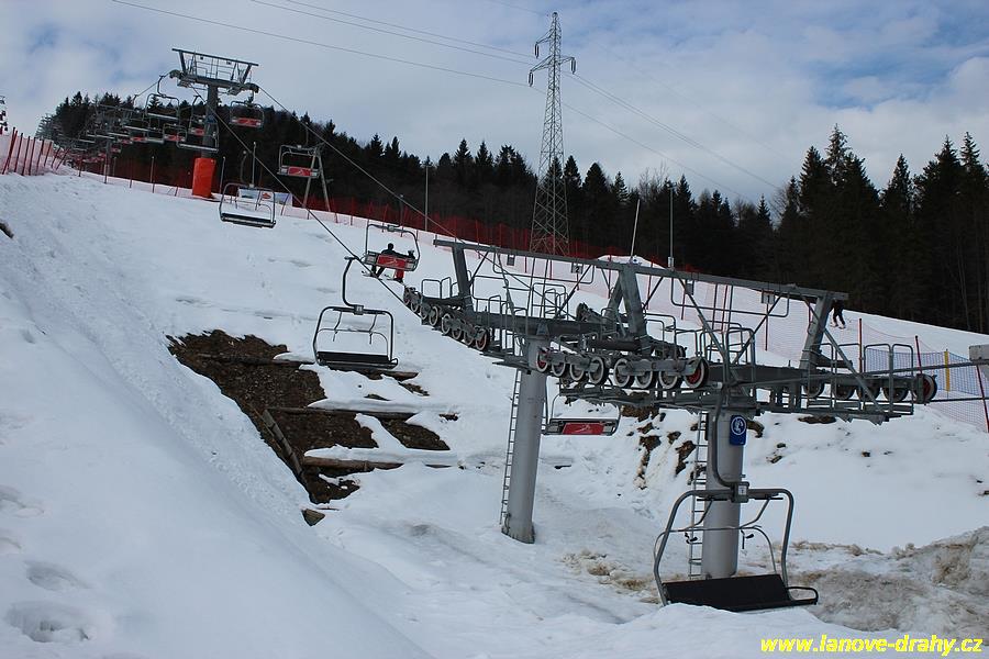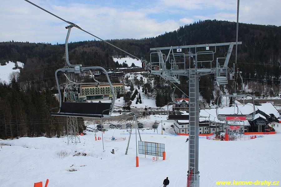 uchycením čtyřmístných sedaček a rozběhovým pásem |