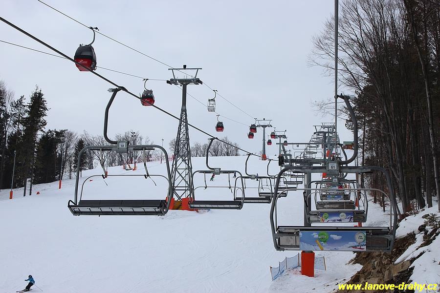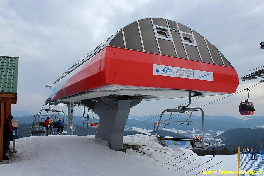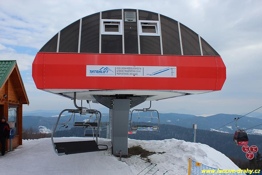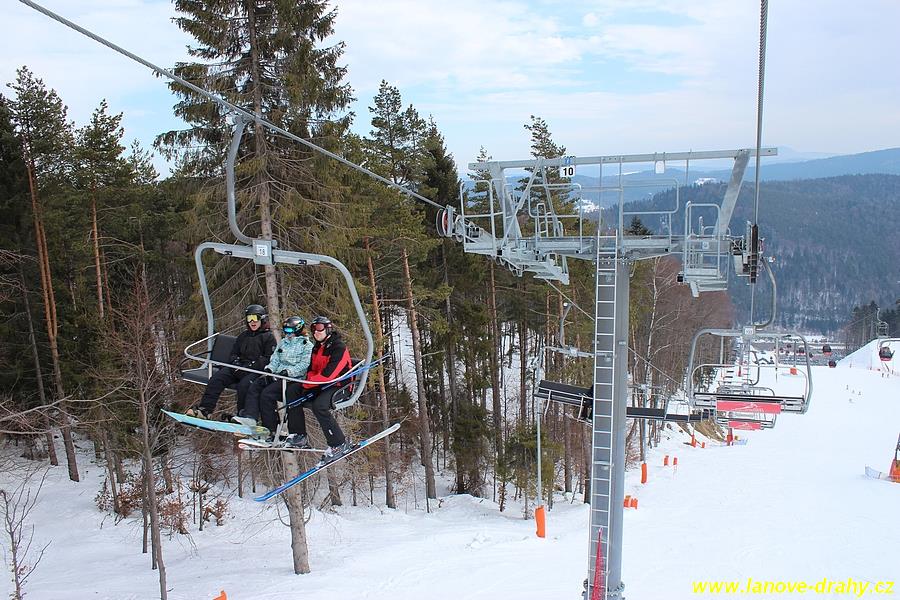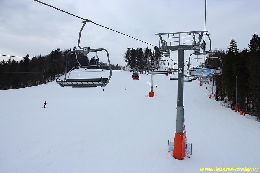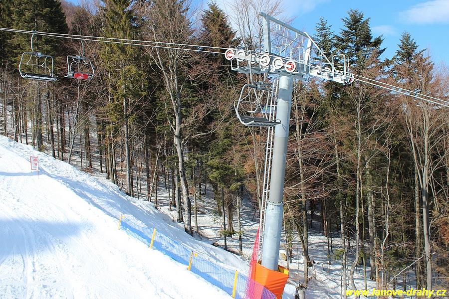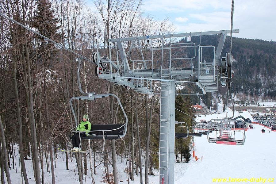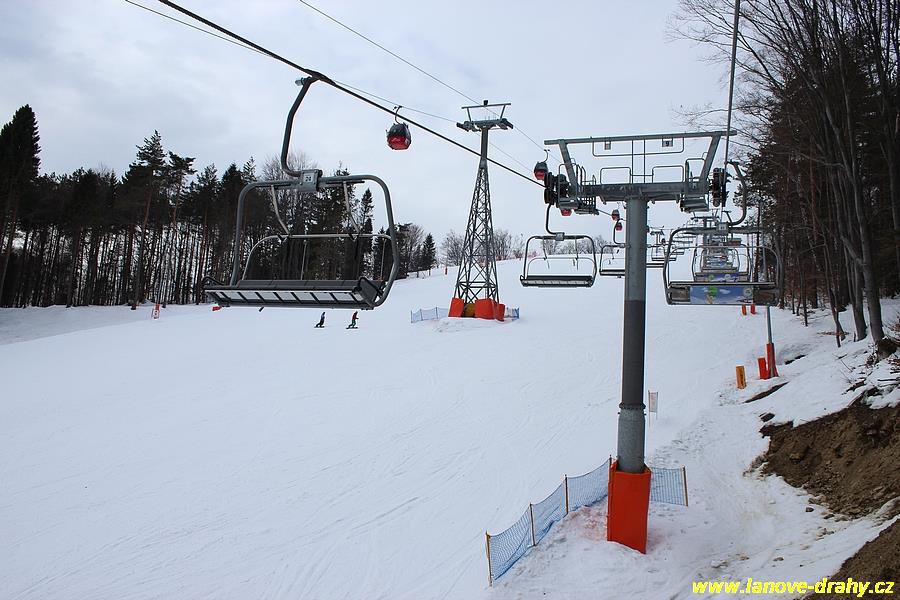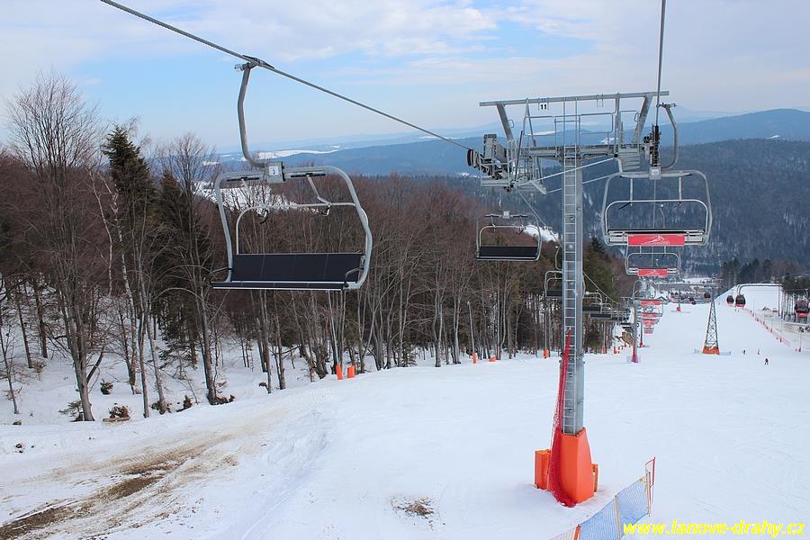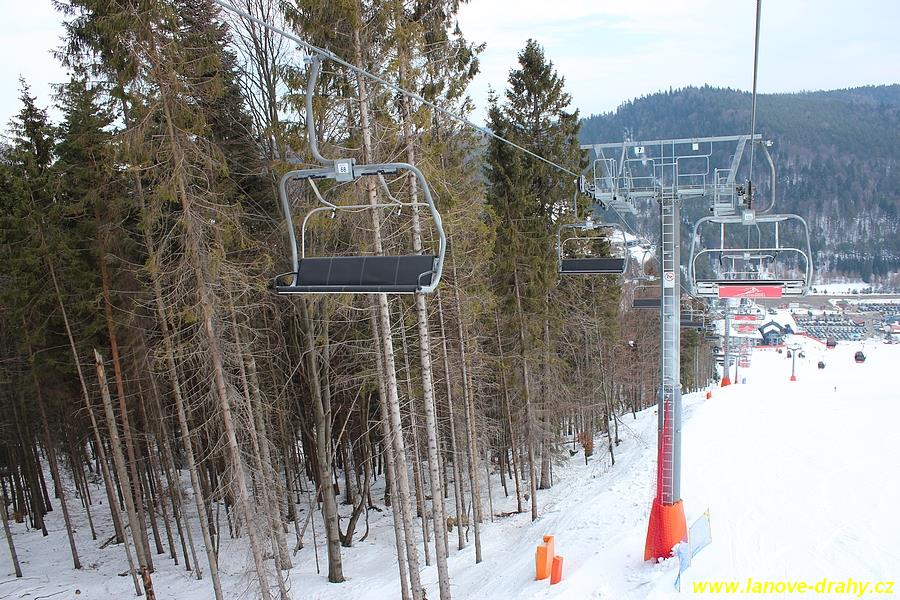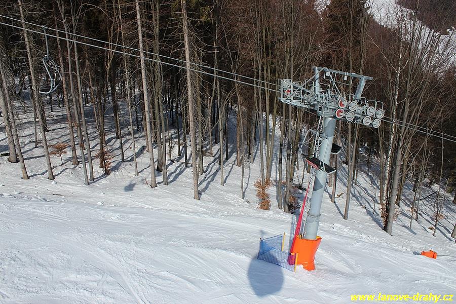 uchycením čtyřmístných sedaček a rozběhovým pásem |