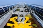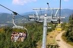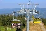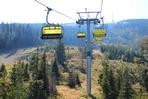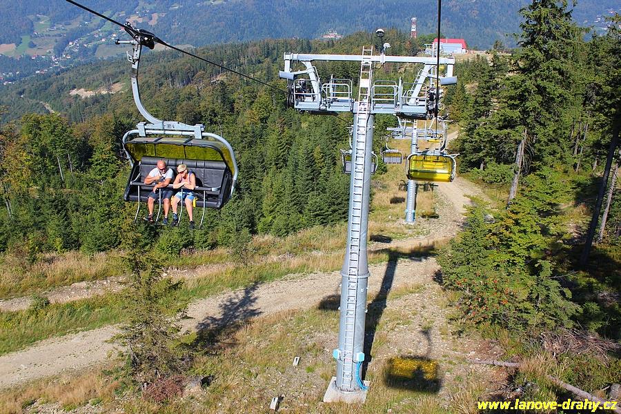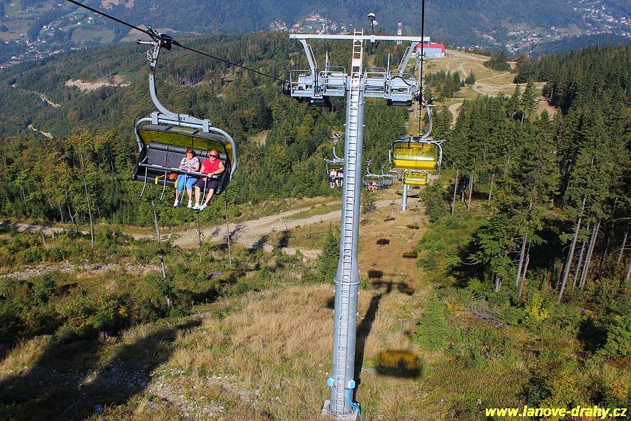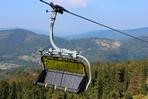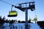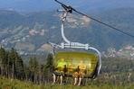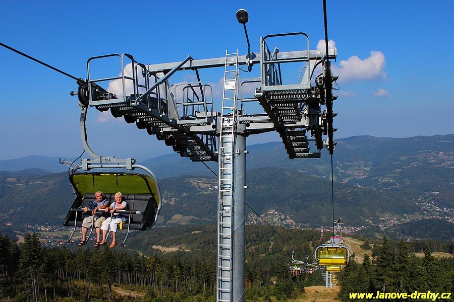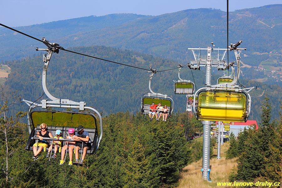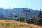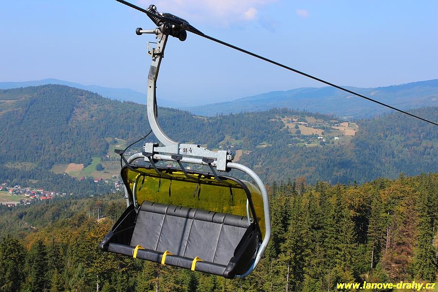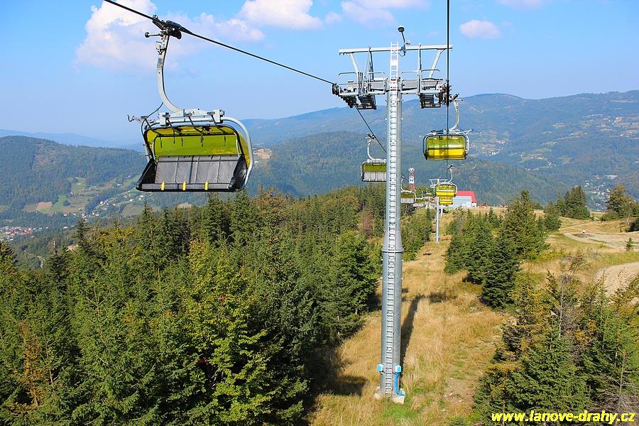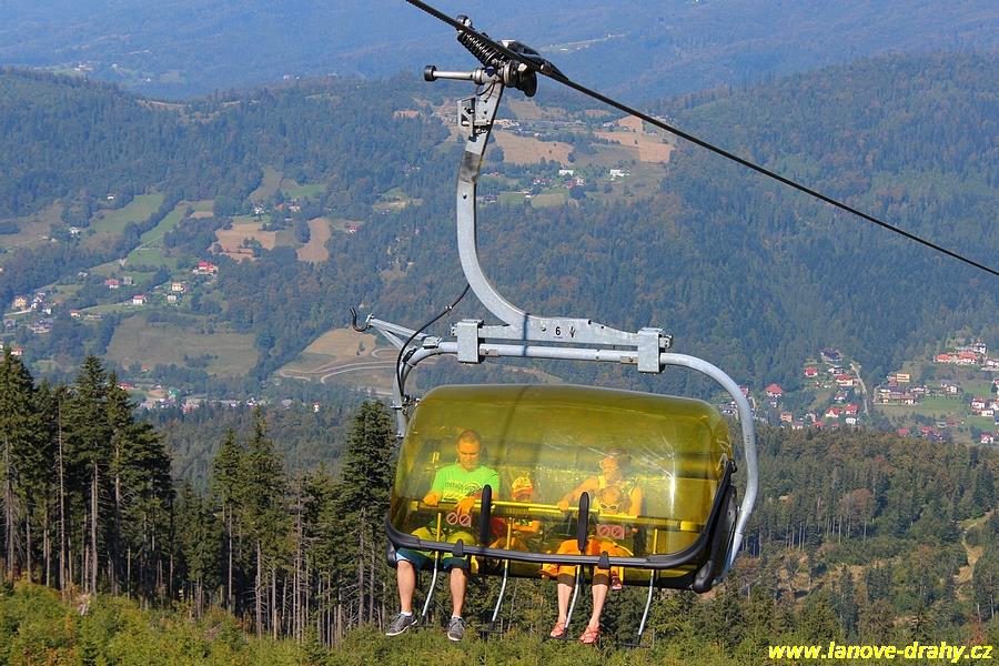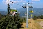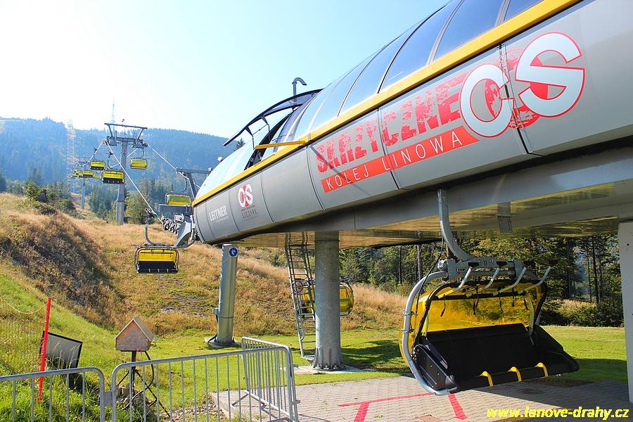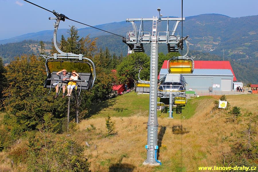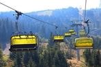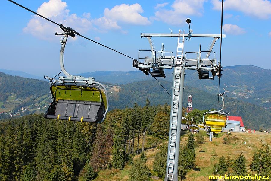 čtyřmístných sedaček se žlutými bublinami, s nástupním pásem
