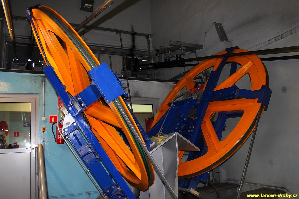 dráha kyvadlového systému s pevným uchycením 60-místných kabin |